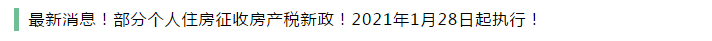 官宣!個人住房征收房產(chǎn)稅新政!1月28日起執(zhí)行!